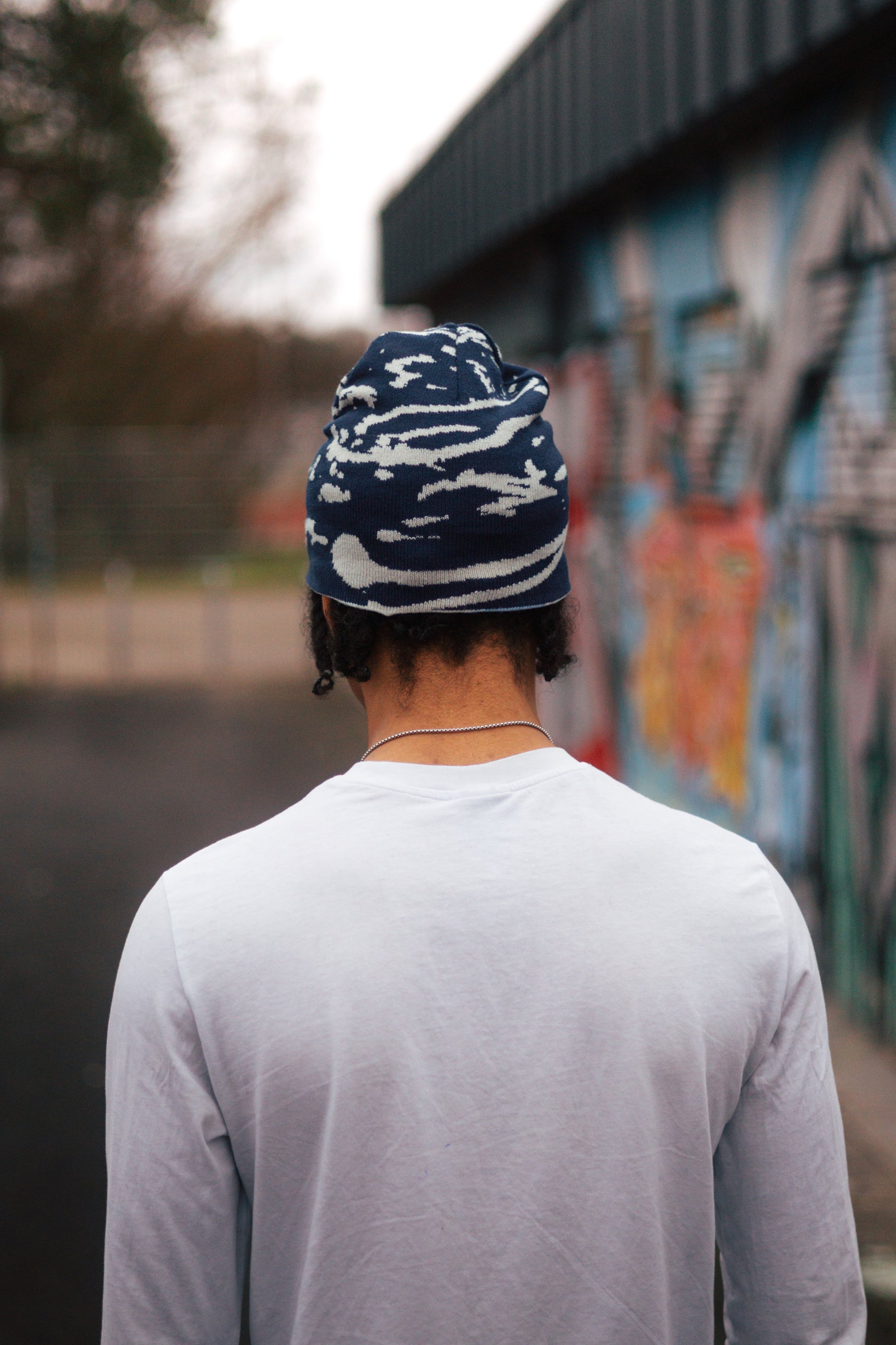 Reversible Beanie Navy Blue/Beige Baby Blue